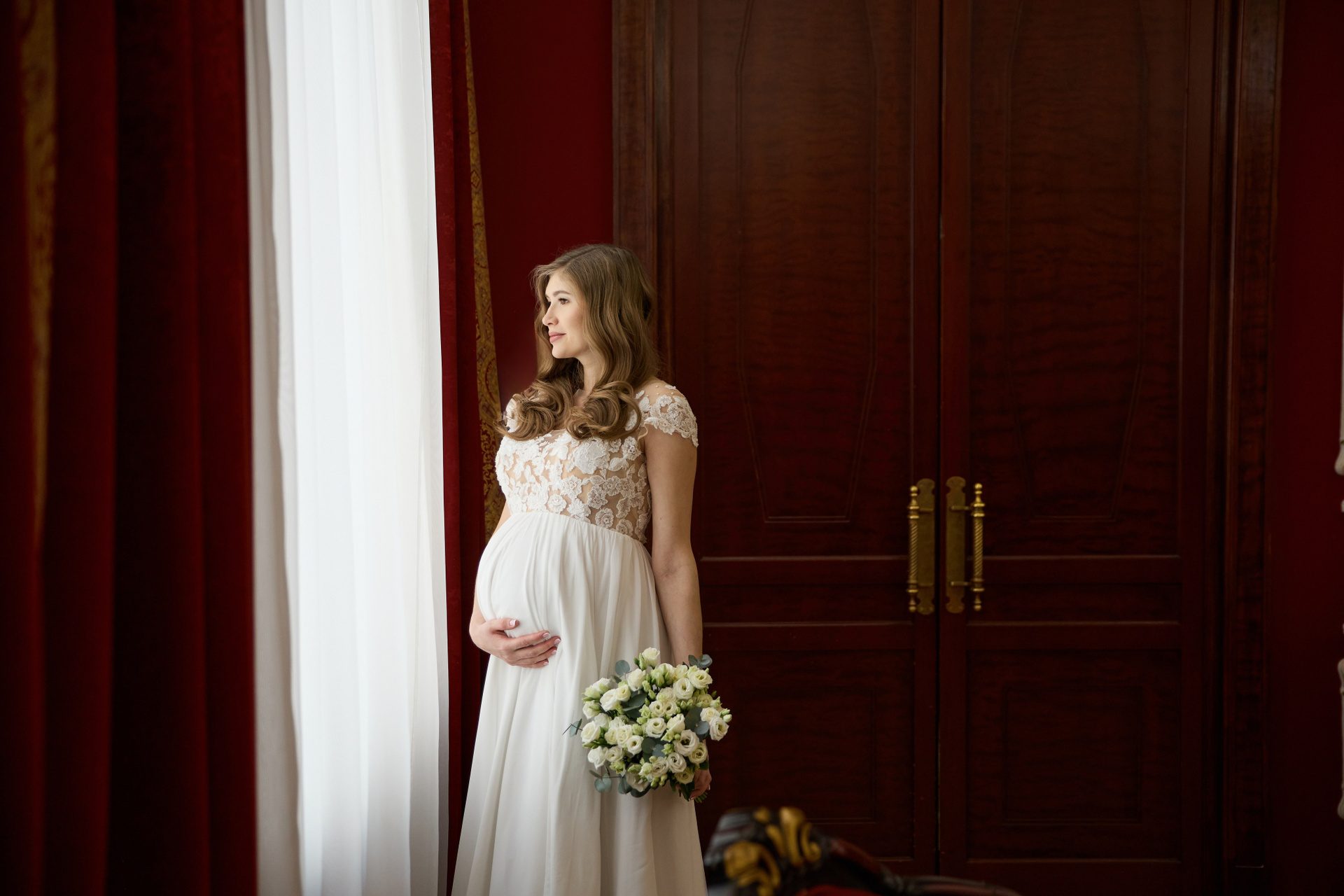 Перед ней была поставлена непростая задачи: сделать фото росписи в загсе с учетом беременности невесты (на поздних сроках) и соответственно невозможности воплощения вжизнь некоторых даже стандартных поз!