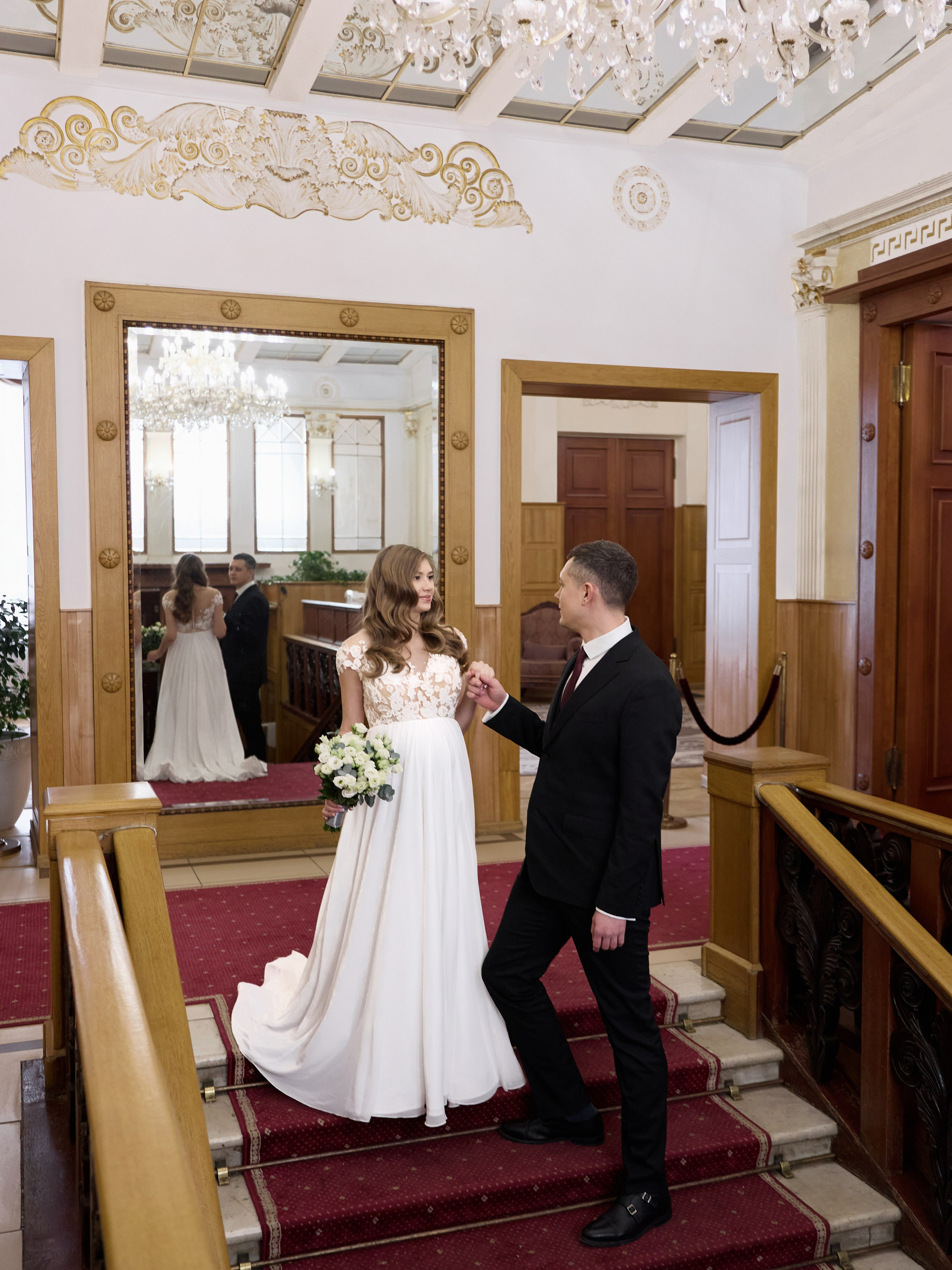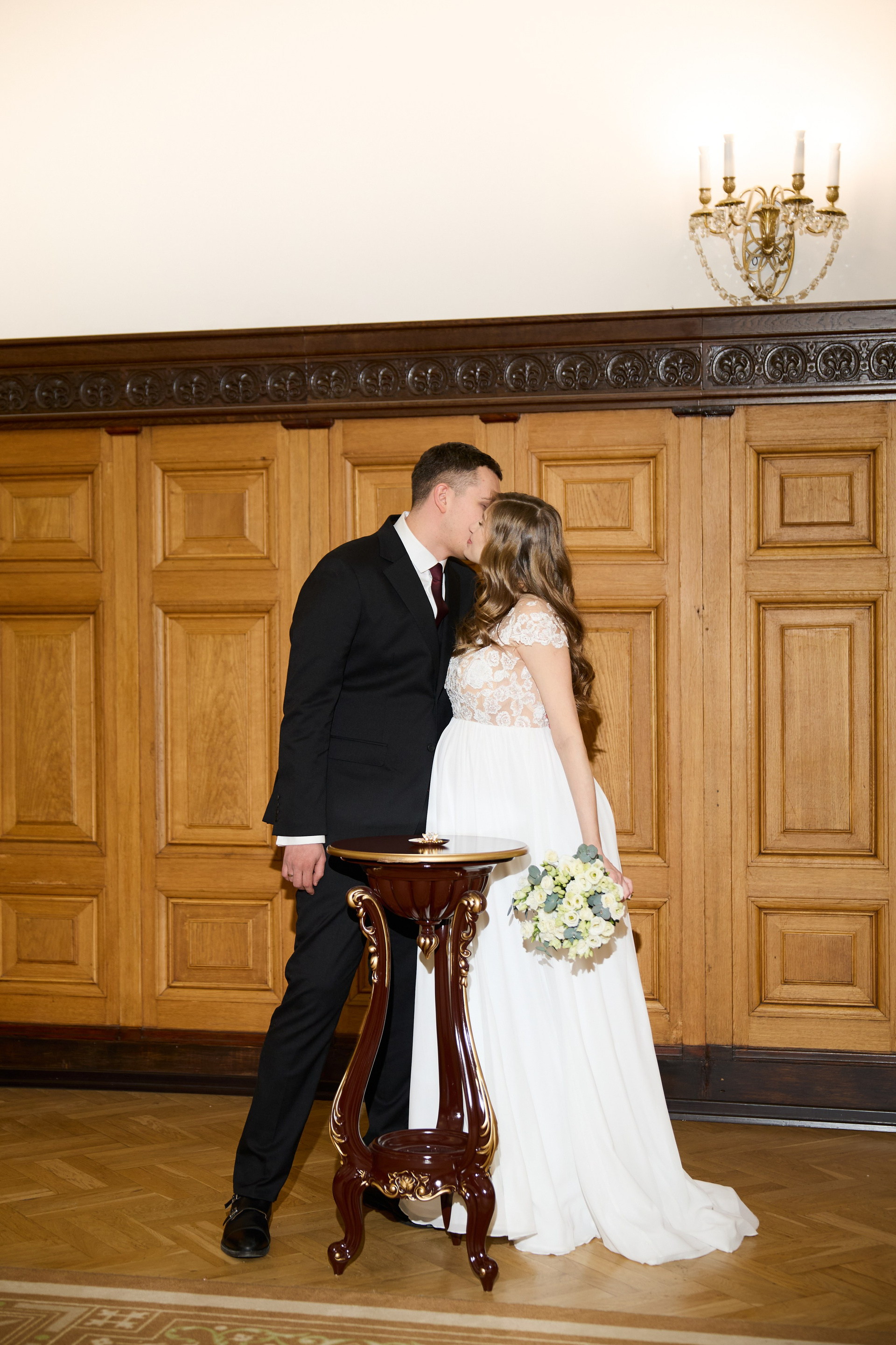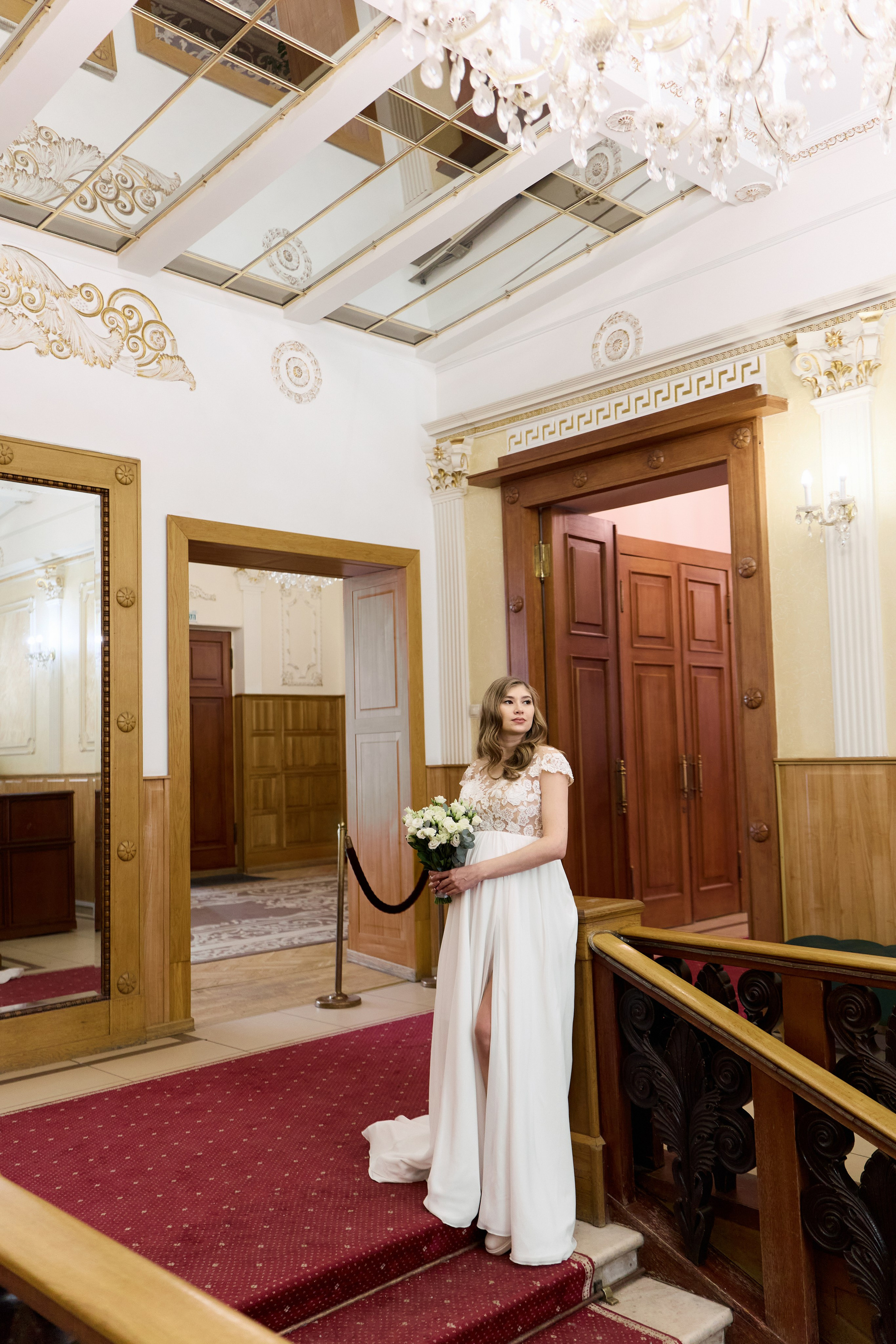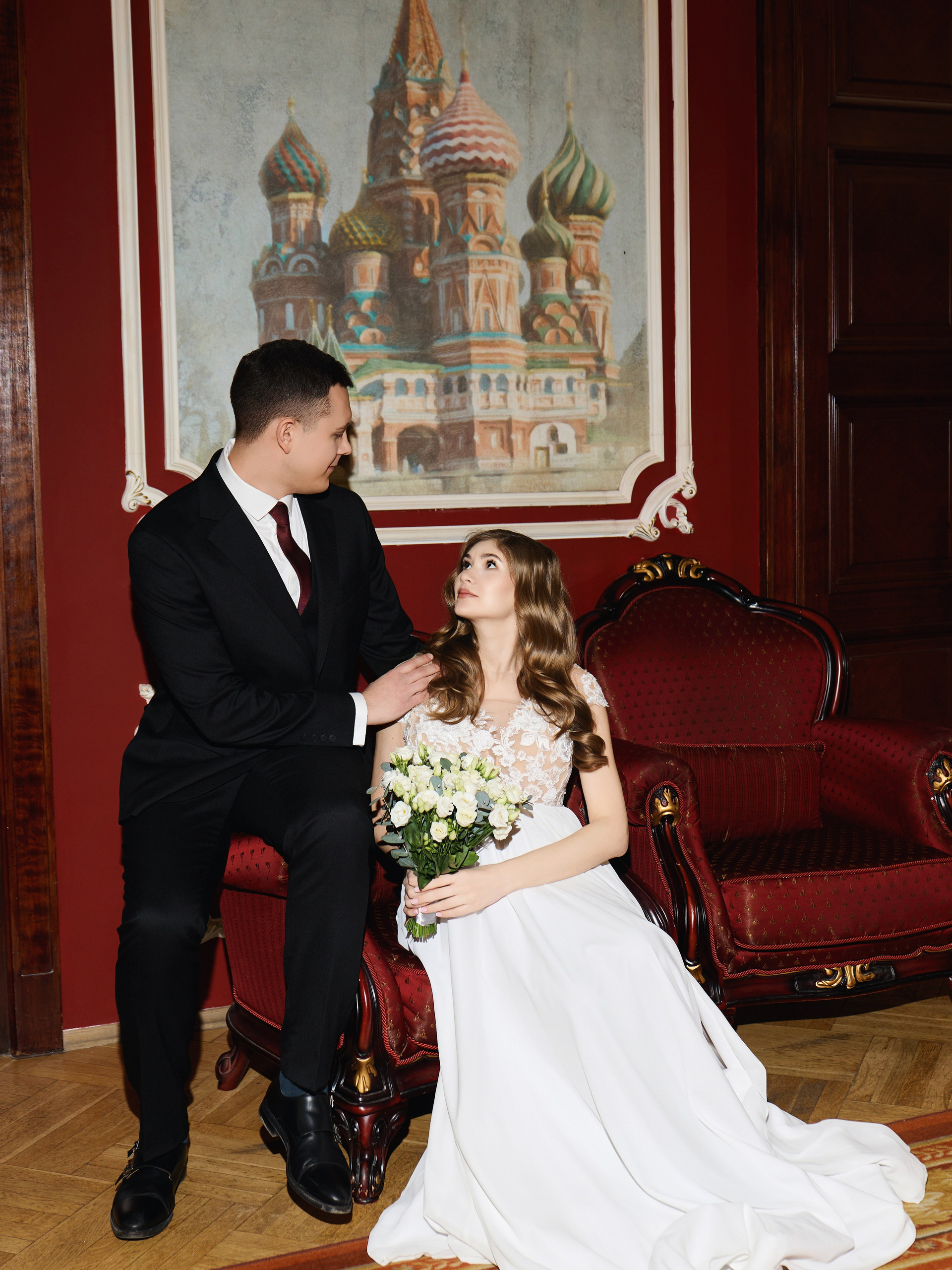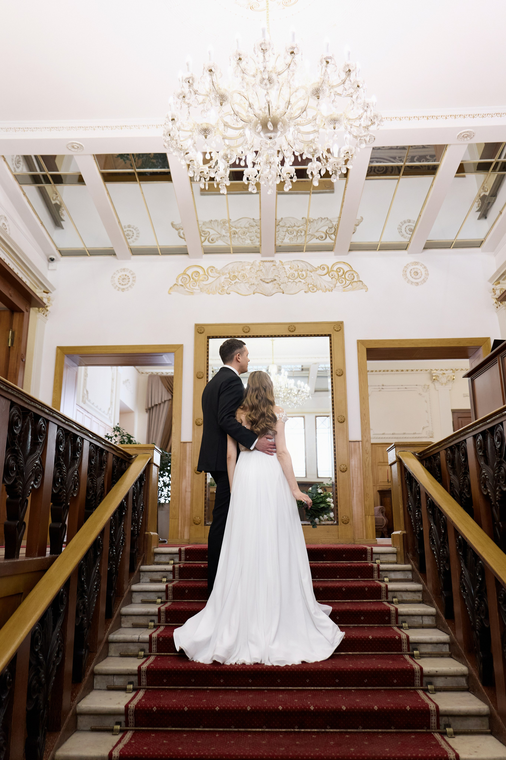 Зимняя свадебная съёмка Маргариты и Дмитрия прошла в одном из самых красивых мест столицы — Грибоедовском ЗАГСе № 1 в Москве. За 1,5 часа мы успели сделать атмосферные кадры в интерьерах ЗАГСа, запечатлеть трогательный момент росписи и снять тёплые фотографии с родными. Нежная регистрация брака в центре Москвы — идеальный пример уютной свадебной фотосессии зимой