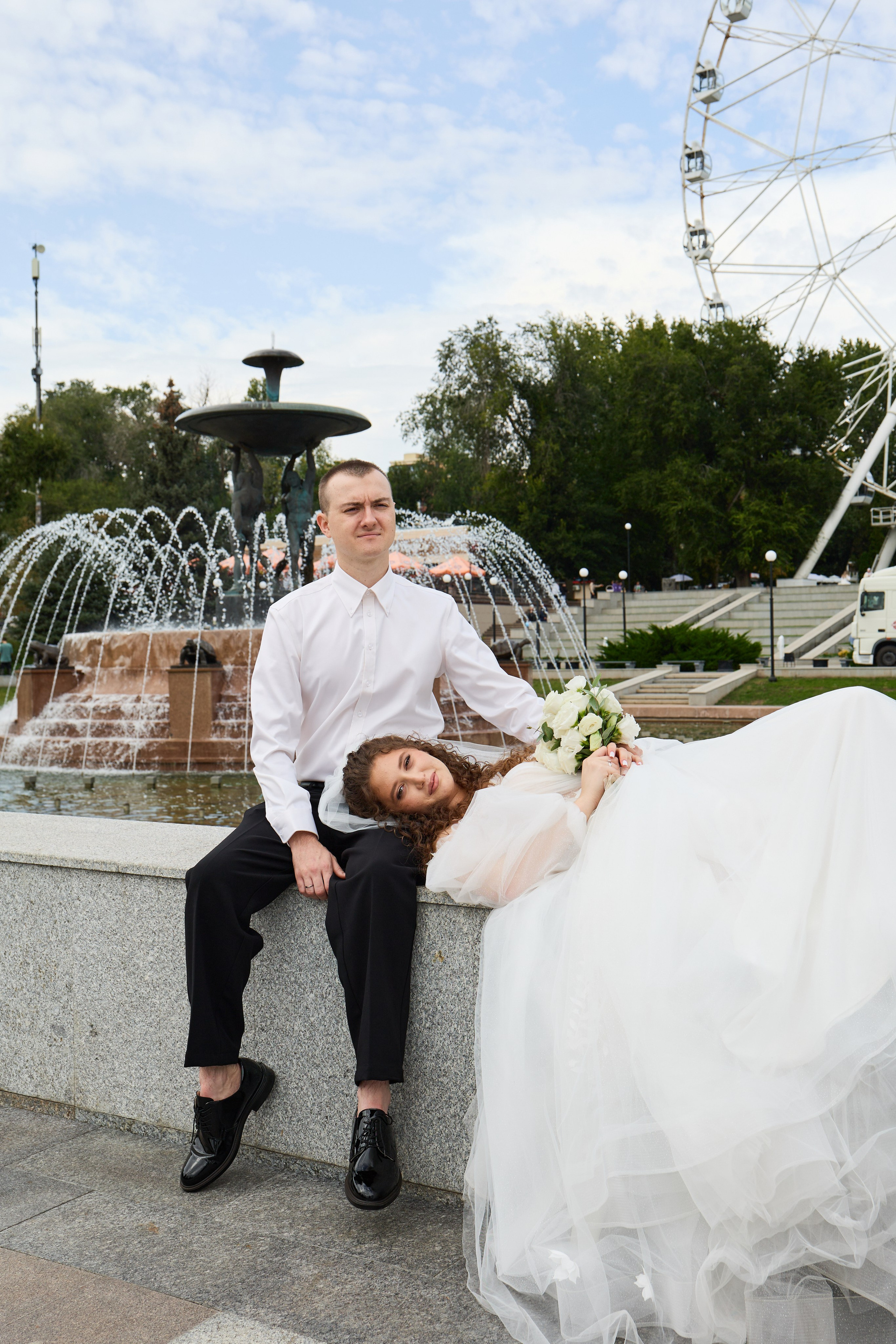 Классические сборы проходили в отеле, небольшая съемка, далее Загс и ресторан с видом на Дон